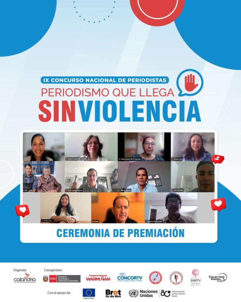 63 trabajos de diez regiones del país participaron en el IX Concurso Nacional “Periodismo que llega sin violencia”. Periodistas de Cusco, Piura y Lima fueron reconocidos en el IX Concurso Nacional de Periodistas “Periodismo que llega sin violencia”, que premia investigaciones periodísticas que visibilizan la violencia de género, la trata de personas y otras vulneraciones […]